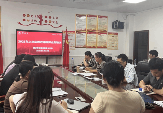 5月23日下午,马克思主义学院在1214会议室举办了2025年上半年思政课教师业务培训,专题学习中央教育工作领导小组秘书组关于印发《普通高校思政课教师队伍建设规划(2025-2027年)》精神。会议由院长朱红英主持,学院全体教职工参加了本次培训。