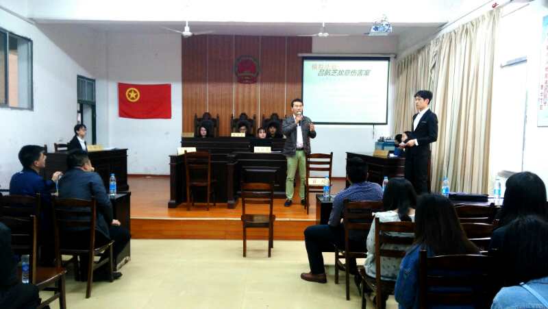 2017年4月26日中午,由校团委和政法学院共同举办的大学生法治课堂暨 “模拟法庭进校园”活动在英华楼模拟法庭举行。政法学院党总支书记叶继林、校团委书记刘德平、校团委副书记谢伟萍、政法学院党总支副书记江惺俊、政法学院法法律教研室主任张洪峰及各学院学生代表一同出席了活动。