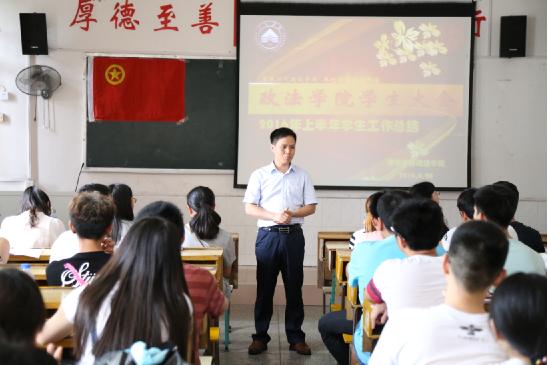 为了更好的总结本学期学生工作的有关情况,布置考试和暑期实践的相关工作。2016年6月20日下午,政法学院2016上半年工作总结大会在跬步楼1103召开。出席本次活动的有政法学院院长朱红英,党总支书记叶继林,党总支副书记江惺俊,团总支书记罗燕妮,各班班主任以及政法学院全体学生。会议由罗燕妮老师主持。