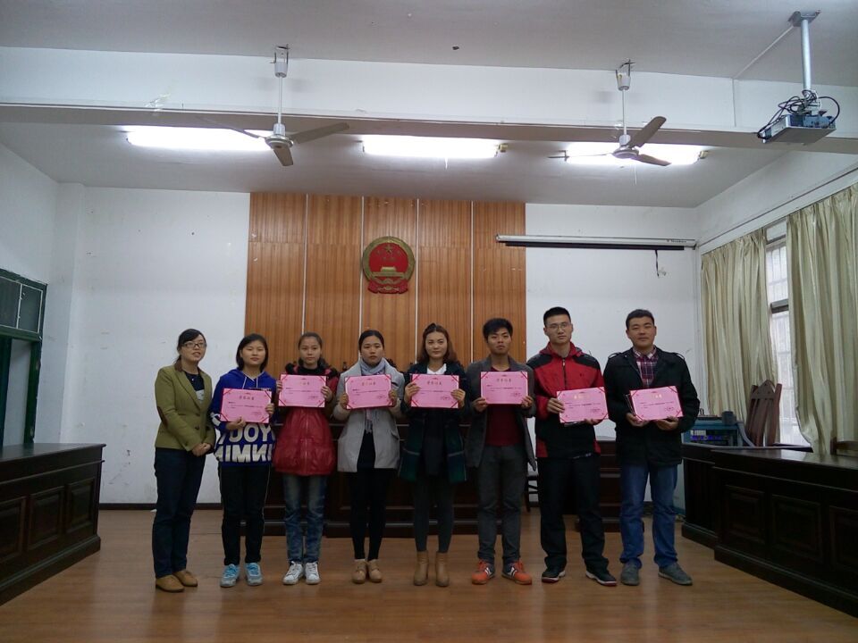 会议第二项议程是为在各项比赛、活动和考试中表现优异者颁发奖励。按照我院制定的学生奖励制度,颁发的奖项有2015年政法学院读书达人、2015年政法学院优秀社会实践生、2015年萍乡学院校园之星比赛获奖者、国家计算机等级考试通过者、国家英语等级考试通过者等诸多项目。颁发学生奖励,是对表现优异的同学最大的鼓励。