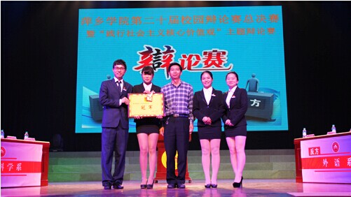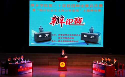 为培育和践行社会主义核心价值观,塑造良好的校园文化氛围,5月28日晚7:30,由思政部、校团委主办,校社团联合会承办的萍乡学院第二十届校园辩论赛总决赛暨“践行社会主义核心价值观”主题辩论赛在音乐厅举行。