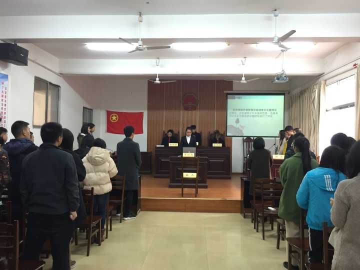 为深入贯彻落实党的十九大精神,增强全校师生法治观念。政法学院于2017年12月8日中午在英华楼举行了模拟法庭活动,出席本次活动的有法律专业教师钱力博士、政法学院师生代表,以及各学院代表。