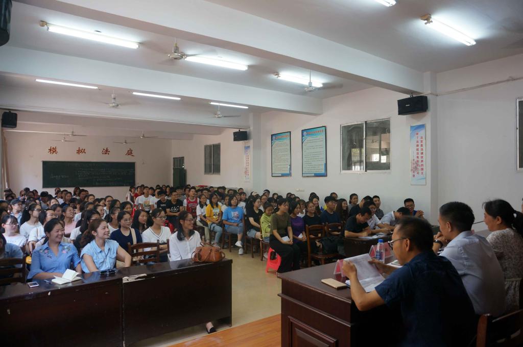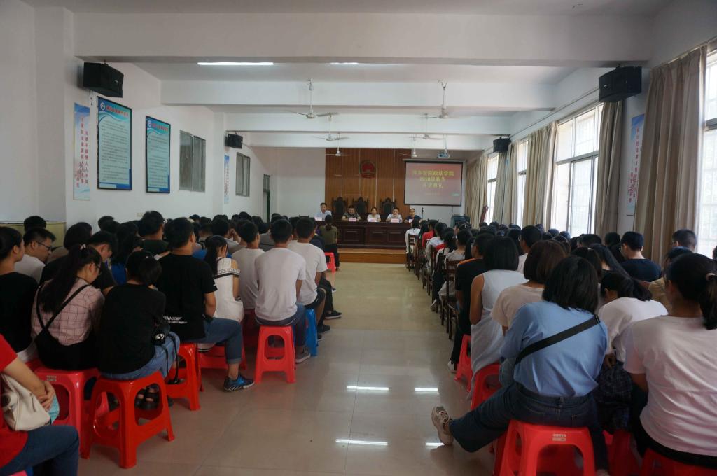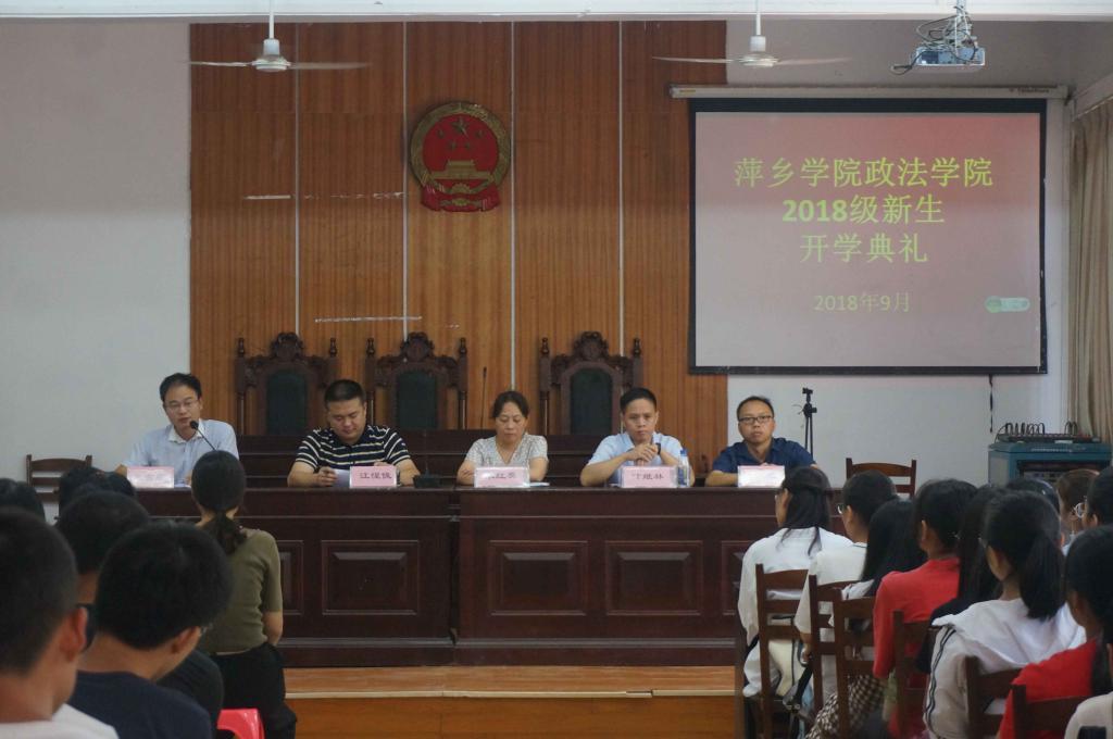 9月10日上午,政法学院在英华楼模拟法庭召开新生开学典礼暨师生见面会。政法学院院长朱红英,党总支书记叶继林、副书记江惺俊、副院长凌焰、团总支书记罗燕妮、各教研室主任、各新生班班主任和全体18级新生参加典礼。
