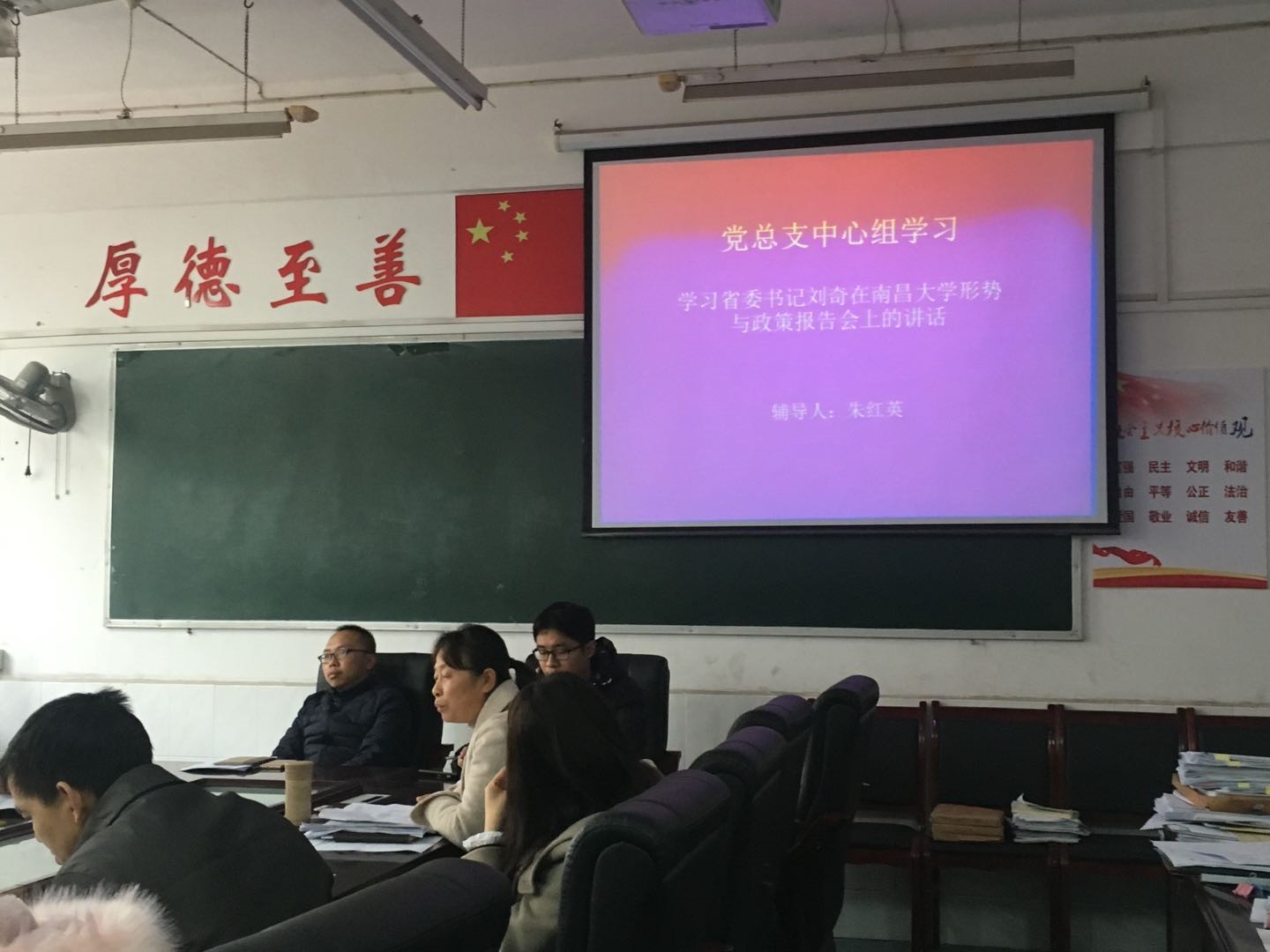 朱红英院长向全体党员传达了刘奇书记在南昌大学形势与政策报告会上的讲话精神。她指出,刘奇书记在形势与政策报告会上,以“放飞青春梦想 展现青春芳华 共绘新时代江西物华天宝人杰地灵新画卷”为题,为在昌部分高校师生作了一场形势与政策报告。刘奇书记以“物华天宝、人杰地灵”为主线,纵论璀璨人文,畅谈秀美河山,深刻阐释了江西底蕴深厚、资源丰富、山清水秀、人才辈出的优秀特质;传达了全国教育大会特别是习近平总书记重要讲话精神;并向全省青年学生提出了殷切希望。
