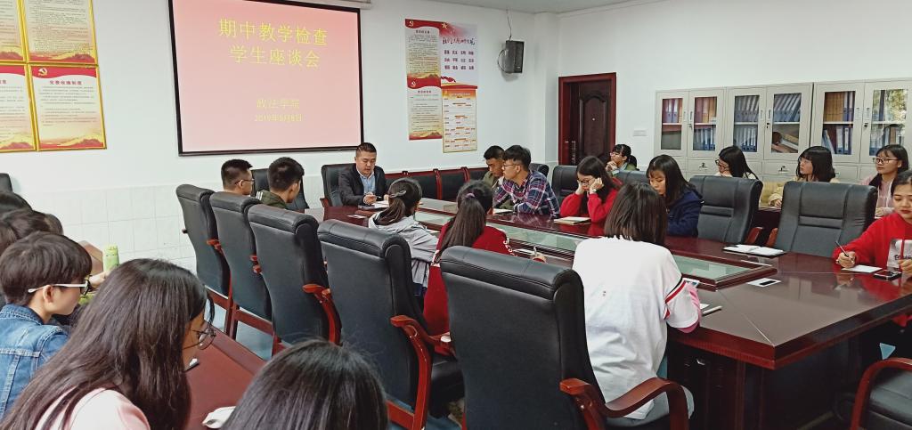 为营造良好的教育教学氛围,进一步提升教学质量,5月8日下午,政法学院在院会议室召开期中教学检查学生座谈会。院党总支副书记江惺俊、张艳老师、各班班长、学习委员和一名学生代表参加。本次会议由江惺俊主持。