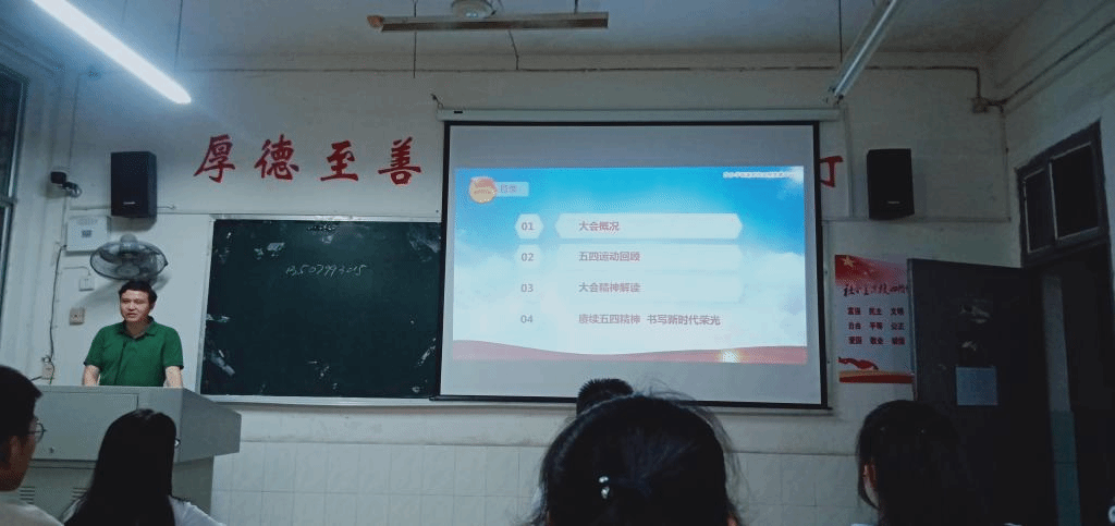 陈永国教授首先介绍了纪念五四运动100周年大会的概况,然后带同学们回顾了五四运动的背景、过程和结果。他提到:五四运动是中国近现代史上具有划时代意义的重大事件。五四运动以全民族的力量高举起爱国主义的伟大旗帜;五四运动以全民族的行动激发了追求真理、追求进步的伟大觉醒;五四运动以全民族的搏击培育了永久奋斗的伟大传统。新时代中国青年运动的主题,新时代中国青年运动的方向,新时代中国青年的使命,就是坚持中国共产党领导,同人民一道,为实现“两个一百年”奋斗目标、实现中华民族伟大复兴的中国梦而奋斗。作为新时代的新青年要树立远大理想,热爱伟大祖国,担当时代责任,勇于砥砺前行。
