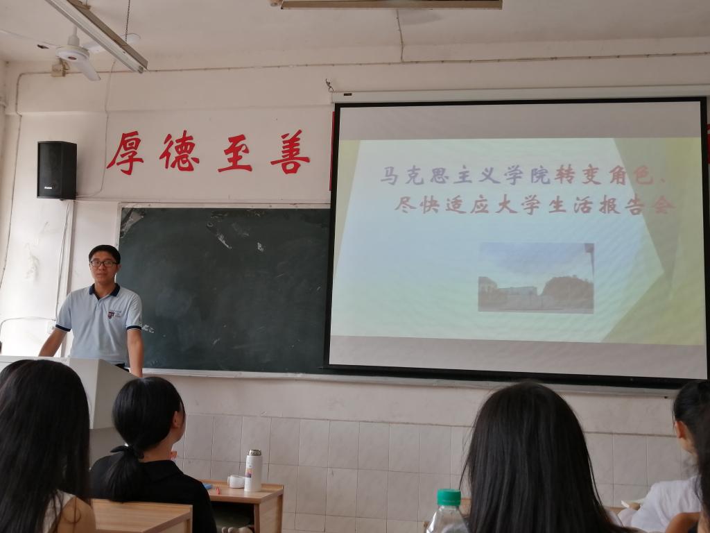 2019年9月9日上午,马克思主义学院在跬步楼1111教室召开2019级新生“转变角色,尽快适应大学生活”报告会,会议由辅导员陈尧嘉老师主持。全体2019级全体新生参加此次报告会。