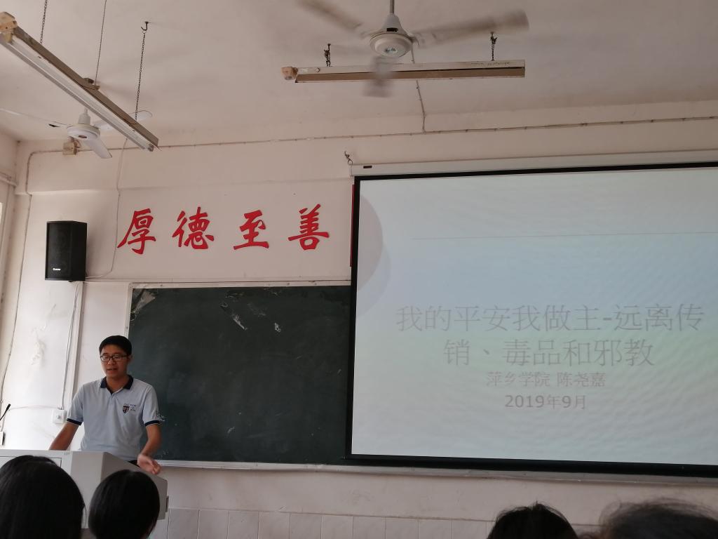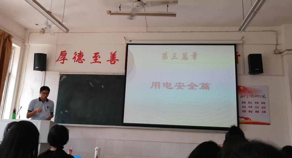 为了提高同学们的安全意识,建设安全、文明宿舍环境,马克思主义学院于2019年9月9日,在跬步楼1111教室召开新生寝室安全知识讲座暨“我的平安我做主”安全主题班会,辅导员陈尧嘉老师主讲。