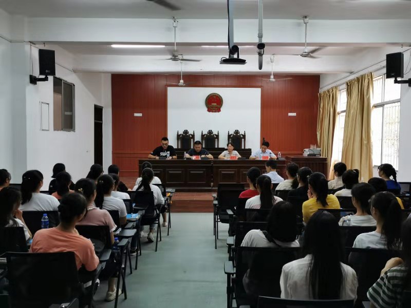 2019年9月10日上午,马克思主义学院在英华楼模拟法庭召开2019级新生开学典礼暨师生见面会。马克思主义学院院长朱红英,党总支书记叶继林、副书记江惺俊、教工党支部书记陈方前教授、辅导员陈尧嘉老师和全体2019级新生参加典礼。
