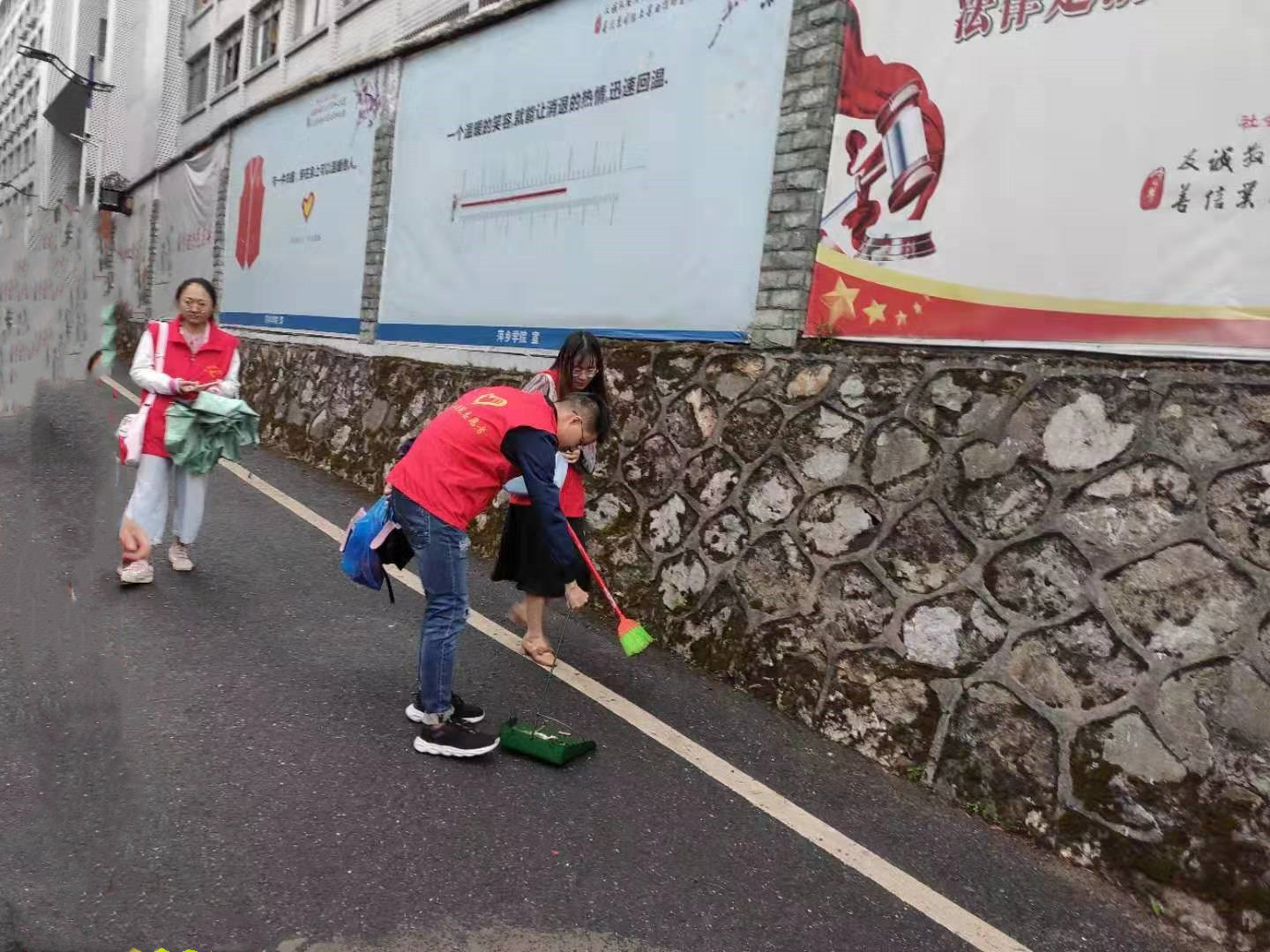 活动开始前,学生党员们就整装待发,提前到达南大门集合。虽然天公不作美,下着蒙蒙细雨,但是丝毫没有削弱党员们的热情。他们身上的志愿者服装成为道路上最靓丽的风景线,彰显着萍乡学院的青春色彩。活动中,他们每个人都细心寻找校园每个角落的垃圾,发扬不怕苦不怕累不怕脏的精神,纷纷用手捡起来路边的垃圾,践行生态文明理念。一个同学拿着扫帚,另一个就用工具承装,学生党员们在互帮互助中感受集体的力量。在蒙蒙细雨中学生党员们认真清扫路面,昂扬的精神状态为冷冽的秋风增添了一丝温暖。通过党员们的齐心协力,整条道路瞬间焕然一新,而这洁净的校园也预示着本次校园道路清扫活动结束。