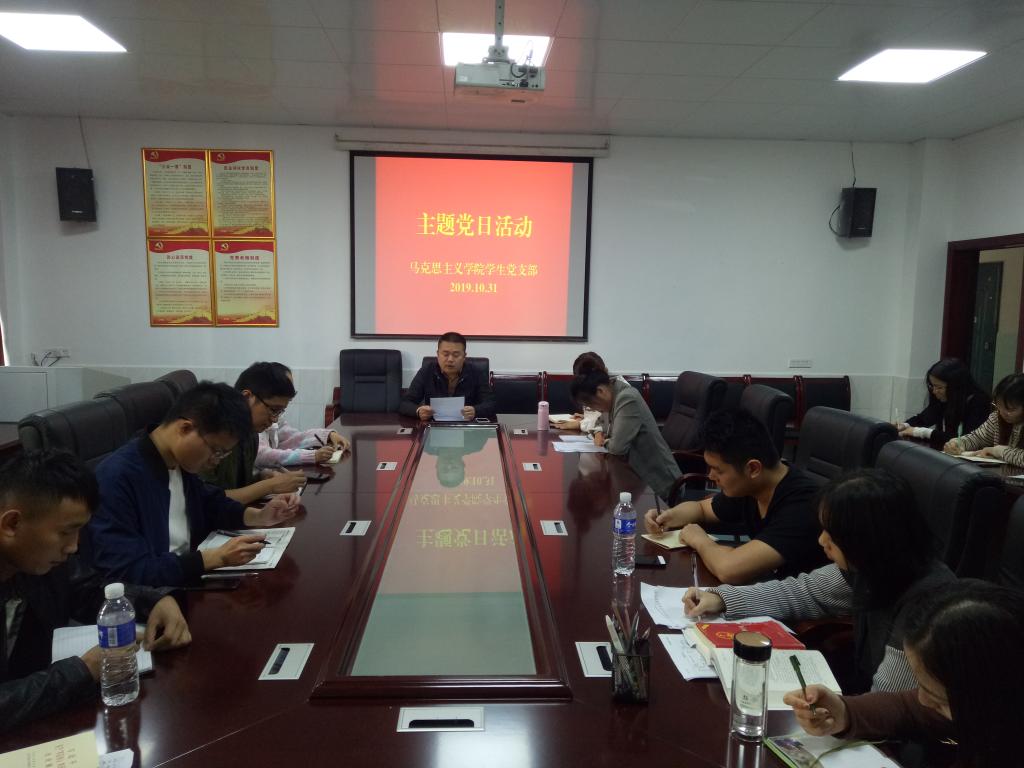2019年10月31日上午,马克思主义学院学生党支部在学院会议室举行了10月份主题党日活动,开展了“不忘初心、牢记使命”第二次主题教育学习,支部所有党员参与本次集中学习。