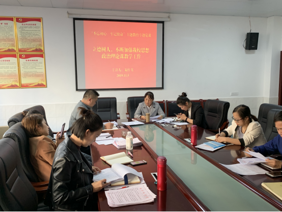 11月5日,马克思主义学院党总支在学院会议室召开“不忘初心,牢记使命”主题教育专题党课,党课主题为《立德树人、不断加强我校思想政治理论课教学工作》,党课由党总支副书记江惺俊主持,全体教职工党员参加。