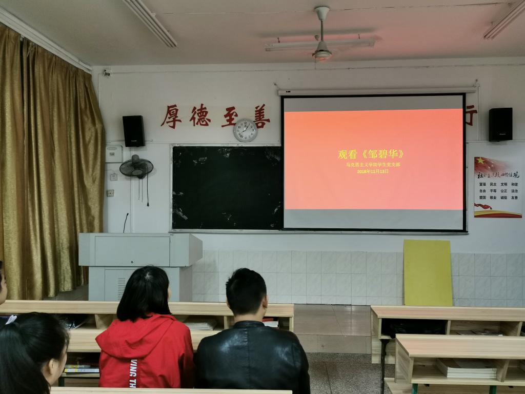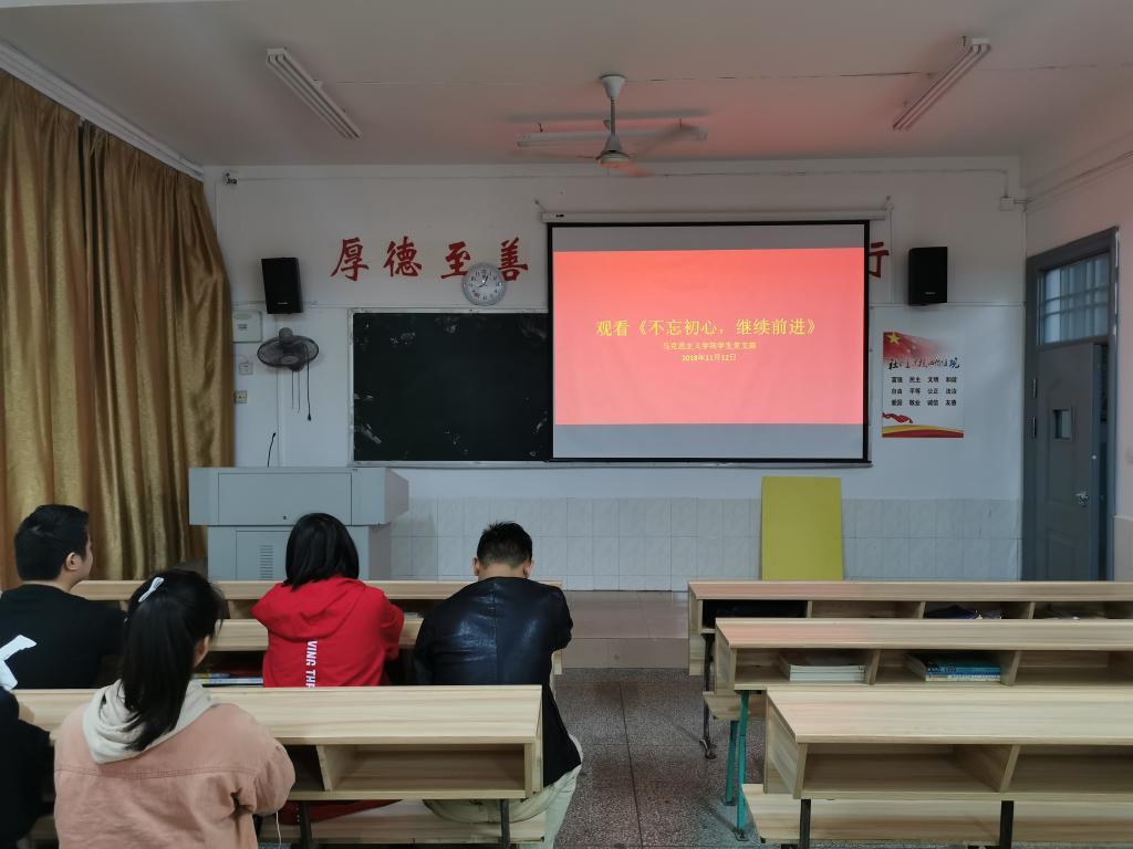 在“不忘初心,牢记使命”主题教育深入开展之际,为了充分发挥党员的先锋带头模范作用,切实做好党员发展工作。2019年11月12日晚,马克思主义学院学生党支部组织2019年下半年入党发展对象在跬步楼1103教室观看《不忘初心,继续前进》《榜样》《邹碧华》三部影片。