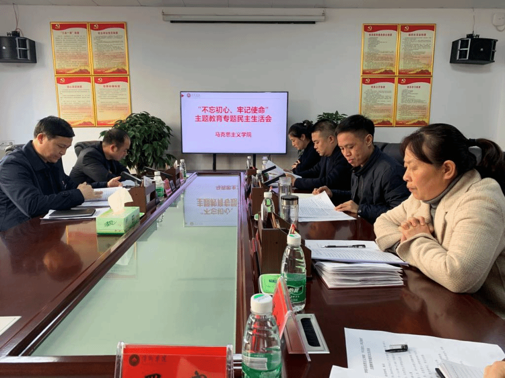 2019年12月6日下午,马克思主义学院在跬步楼二楼会议室召开“不忘初心,牢记使命”主题教育专题民主生活会。萍乡学院主题教育第二指导组组长陈永国、成员贺新光到会指导,马克思主义学院领导班子成员、党支部书记、党总支支委参加会议,会议由党总支书记叶继林同志主持。