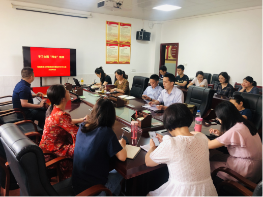 为了让全体思政课教师及时学懂弄通今年“两会”精神,讲好中国故事,把“两会”精神融入到思政课的教学工作中去,5月31日,马克思主义学院党总支中心组组织全体党员教师在学院会议室开展了“两会”精神专题学习。