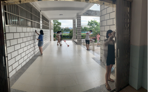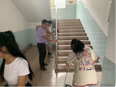 活动中,党员们积极参与拿起抹布、扫帚等工具,对跬步楼楼道两旁的垃圾、杂物等进行全面的清理整治,不放过一个死角,夏日的阳光虽然炎热,但大家都热情高涨、干劲十足,以劳动为荣,乐在其中,用辛勤的汗水换取了教学楼环境的优美洁净。清扫完跬步楼楼道后,大家积极热情,分工合作,来到学院会议室,协助老师打扫地面和天花板的灰尘。