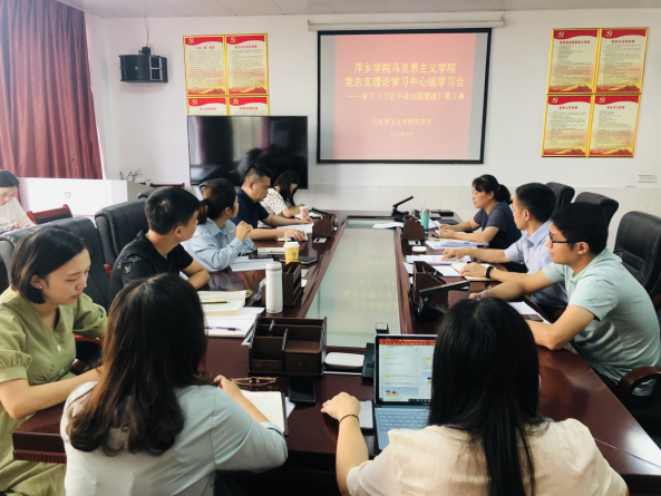 9月15日,马克思主义学院党总支在院会议室组织开展学习学习《习近平谈治国理政》第三卷。学院党总支书记叶继林、院长朱红英、副书记江惺俊及全体教职工党员参加学习。