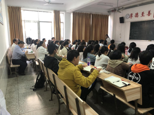 课堂上,陈金印认真听讲,细心观察师生互动,不时在听课本上做记录。课后,陈金印与任课老师刘根梅进行交流,对刘老师的教学态度、教学内容、教学方法以及学生的出勤情况、听课状态给予肯定,对改进教学方法、提高课堂教学质量、调动课堂气氛、与学生互动等方面提出指导性的意见和建议。陈金印认为教师要把思想政治教育像盐融进汤里一样融入专业课教学中,实现协同育人。