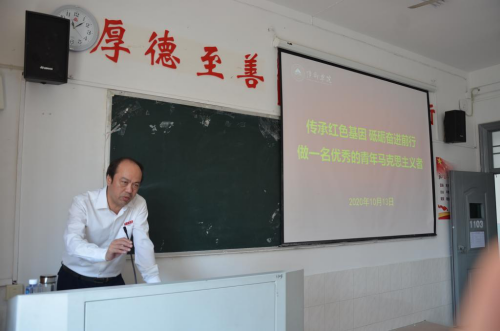 在以“传承红色基因 砥砺奋进前行,做一名优秀的青年马克思主义者”为主题的班会课上,陈金印引用青年毛泽东在萍乡安源革命斗争的案例,让学生们感受到革命先辈就在脚下的热土上战斗、在不远的身边革命,红色基因就在我们周围,鞭策同学们在成长道路上奋进前行,争做新时代的青年马克思主义者。