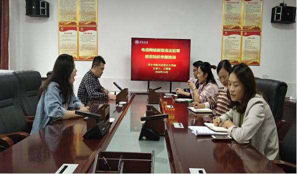 2020年10月15日中午,马克思主义学院召开了“电信网络新型违法犯罪防范知识”专题培训会,同时安排部署我院各班级防诈骗工作。学院党总支副书记江惺俊主讲并作相关布置,马克思主义学院各班班主任老师和辅导员参加了会议。