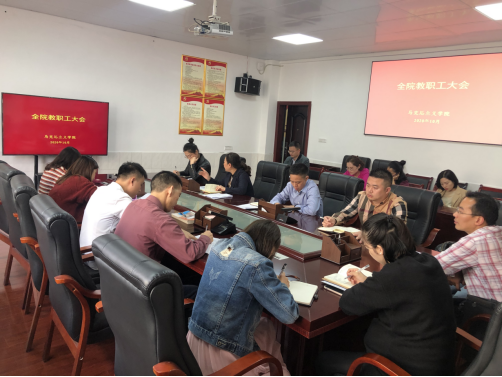 10月27日下午,马克思主义学院召开全院教职工大会,学院院长朱红英、院党总支书记叶继林、党总支副书记江惺俊及全体教职工参加会议。