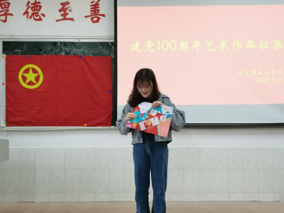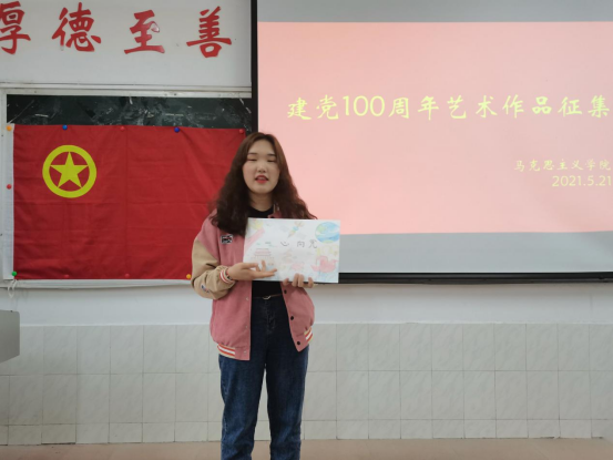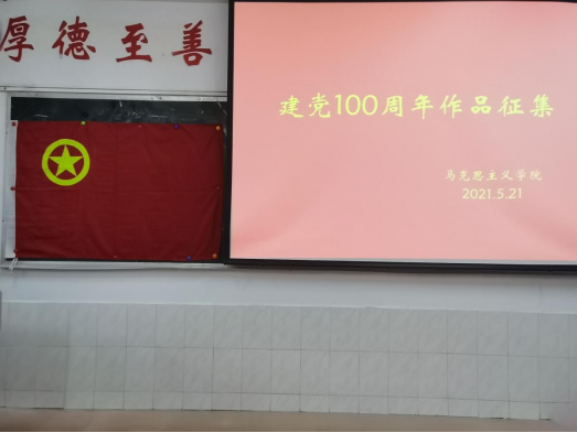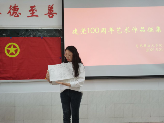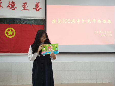 为庆祝中国共产党成立100周年,营造积极学习、敬党爱党的良好氛围,加强马克思主义学院学子的政治素养,促使团员青年积极向党组织靠拢,马克思主义学院于2021年5月21日下午13时在跬步楼1109举办了建党一百周年艺术作品征集大赛。