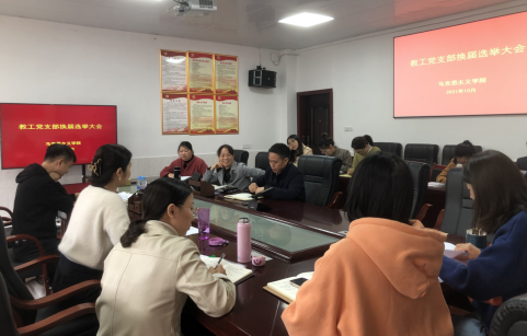 2021年10月19日,萍乡学院马克思主义学院教工党支部换届选举大会在党建活动室顺利召开。本次会议由黄怡同志主持,教工党支部所有在职党员参会。