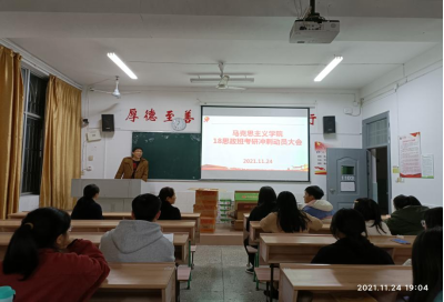 为了进一步鼓励考研学子在接下来的一个月积极备考,增强迎考备战的信心,马克思主义学院于11月24日晚上7点在跬步楼1103教室召开考研动员冲刺大会,本次大会由学工科负责人陈尧嘉主持,马克思主义学院院长朱红英,教学科研科长何知,劳动教育教研室主任乔兰和18思政全体考研同学共同参与。