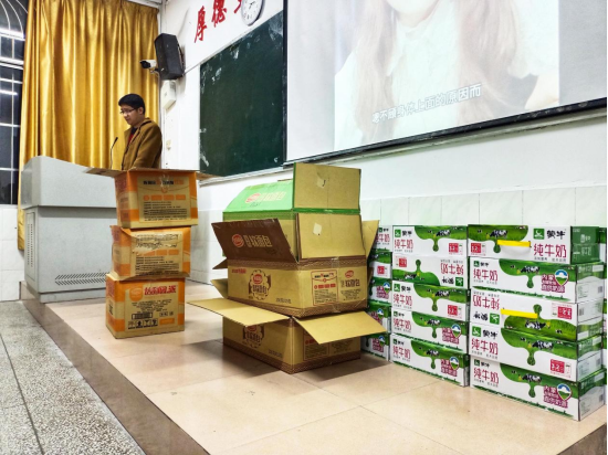 会议伊始,陈尧嘉老师播放了17思政学长学姐录制的考研加油视频,为大家加油鼓劲。接下来乔兰老师为大家提出了三点建议:调整好心态,放松心情以平和的心态应对考试;调整对复习内容的规划,合理分配各科复习时间;调整作息时间,保证睡眠,合理饮食,以最佳的精神状态备战考研冲刺。随后陈尧嘉老师分享自身的考研经验,提醒广大考研同学要注意方法和技巧,有所侧重,采取科学高效的复习方法。最后朱红英院长肯定了同学们的前期努力成果,鼓励同学们继续坚定考研信念,行百里者半九十,再苦再累不放弃,相信自己一定行!会议后半段,老师们手托牛奶箱,亲自将牛奶一一摆放在学生的桌前,递到每个同学的手边。