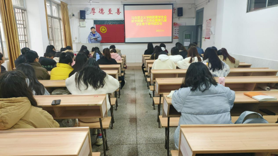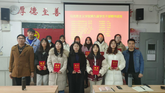 2022年3月1日中午12时,马克思主义学院团委学生会在跬步楼1109教室举办了新学期第一次例会暨第九届学生骨干聘书颁发会。出席人员有院党委副书记黄如光、团委书记陈尧嘉、马克思主义学院团委学生会全体成员,本次例会由主席团成员岳创主持。