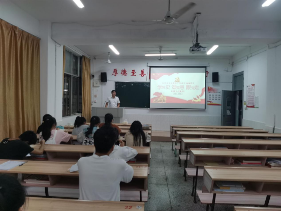 本次入党积极分子培训班采用理论教学、实践教学、自学和撰写学习心得相结合的方式。理论教学通过集中培训现场教学的方式开展;一共有四个环节,分别是党委负责人宋波讲授党章相关知识,陈尧嘉老师讲授“学党史,颂党恩,跟党走”主题党课,学院副书记黄如光讲授党员发展工作程序、院长朱红英讲授“党史教育”理论课程,这四个部分构成。实践教学以在线观看红色教育片《大火种》、纪录片《不忘初心,继续前进》等方式开展。