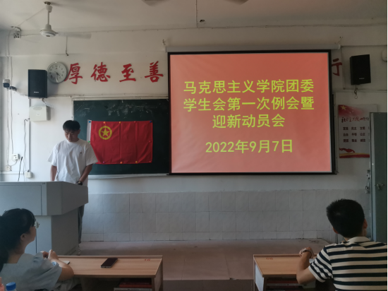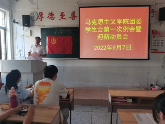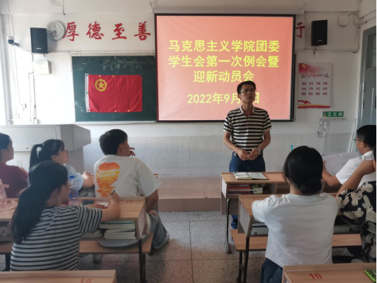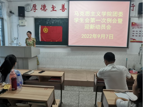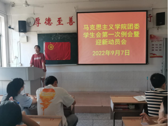 为了保障迎新活动顺利进行,2022年9月7日下午5点20分,马克思主义学院团委学生会第一次例会暨迎新动员大会在跬步楼1109顺利举行,出席本次会议的嘉宾有马克思主义学院党委书记宋波、团委书记陈尧嘉和2022级新生辅导员段杉,本次会议由马克思主义学院学生会轮值主席岳创主持,团委学生会全体成员到场参加本次会议。