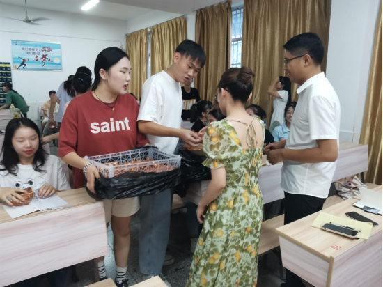 9月7日下午6时,由学院党委书记宋波、陈尧嘉老师,段杉老师带领学生会成员开始进行月饼的发放,领到月饼的同学们脸上洋溢着感动与喜悦,每一声“谢谢”都饱含着幸福的味道,现场节日氛围浓厚。收到月饼后,同学们纷纷表示,学院发的月饼吃出了家的温暖。