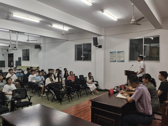 会议第二项,马克思主义学院段杉老师在典礼上发表讲话,希望新生要以“取乎其上得乎其中,取乎其中得乎其下”的标准确定未来四年的学习目标,并通过积极的“深入参与”各项教学、实践活动来更好地达成自己的追求,同时也告诫新生们在实践活动与学习之间找到平衡点,务必调节好心态,让工作和学习成为幸福生活的原动力。
