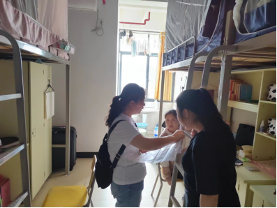 10月5日,我院院长朱红英前往新生寝室,看望2022级新生。