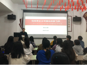 在喜迎党的二十大胜利召开之际,为落实学校关于充分发挥“十百千宣讲团”开展宣讲工作的相关要求,10月13日,校党委委员、宣传部长陈永国深入18栋学生寝室作题为《马克思主义中国化的新飞跃》的主题宣讲报告。院党委书记宋波及马克思主义学院部分师生代表认真聆听了宣讲。