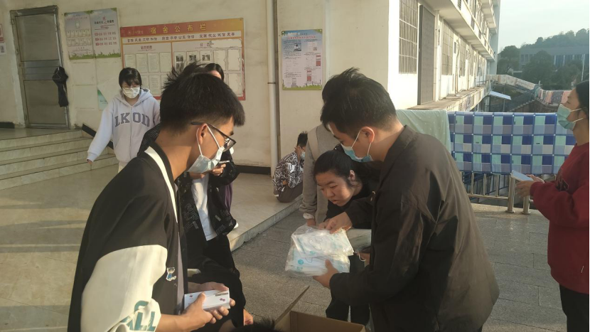在老师们的带领下,团委学生会成员将防疫物资分装完毕,并提醒大家勤消杀,注意个人卫生,科学防疫,遇到困难与老师同学积极沟通,保持平稳心态进行日常生活与学习。