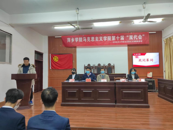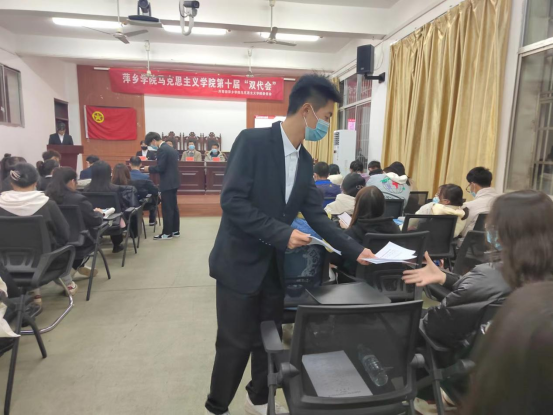 前贤牵马推新秀,继往开来奏凯歌。12月7日,共青团萍乡学院马克思主义学院第十届“双代会”在英华楼模拟法庭隆重召开。马克思主义学院党委书记宋波、党委副书记黄如光、团委书记陈尧嘉、团委副书记伍清、学生会主席常玉珍以及来自学校四大组织的负责人及各兄弟学院的学生会主席、团委副书记参加大会。