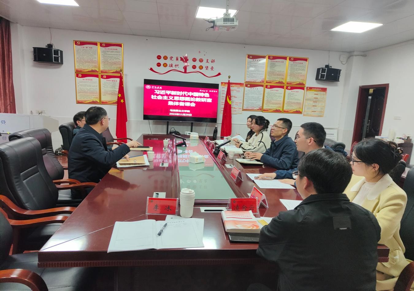 为提高思政课教学质量,促进思政教师交流成长,切实提升“习近平新时代中国特色社会主义思想概论”课程教学效果,2024年11月20日,副校长吴代赦在高评所主任易志文的陪同下,参加了马克思主义学院“习近平新时代中国特色社会主义思想概论”第四次集体备课会,会议由教研室主任甘希主持,出席备课会的有院党委书记宋波及教研室全体教师。