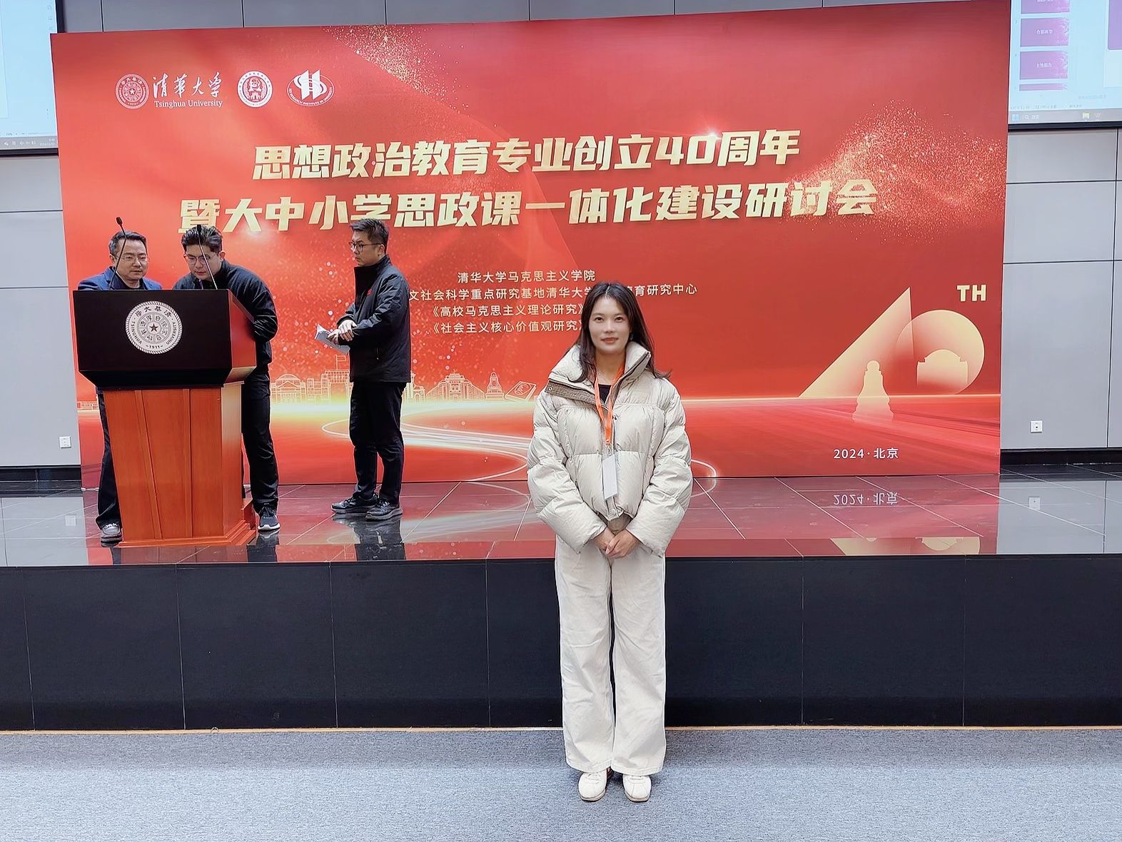 今年正值思想政治教育学科创立四十周年,为深入学习贯彻习近平新时代中国特色社会主义思想和党的二十大、党的二十届三中全会精神,深刻领会习近平总书记关于思政课建设的重要论述,推进大中小学思政课一体化建设,有效发挥思政课立德树人关键作用。由清华大学马克思主义学院、教育部人文社科重点研究基地清华大学高校德育研究中心主办的“思想政治教育学科创立四十周年暨大中小学思政课一体化建设研讨会”于2024年11月23日在清华大学举办。我院李萍同志论文入选,并应邀参加研讨会。