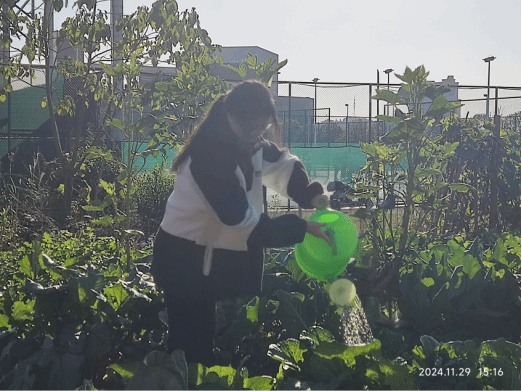 为了方便在菜地里行走劳作,部分同学承担起了搭建小道的任务。他们将一块块砖头整齐地排列,遇到不平整的地方就用小铲子将地面铲平。在大家的共同努力下,一条由砖头铺就的小道逐渐成型,蜿蜒在菜地之中。