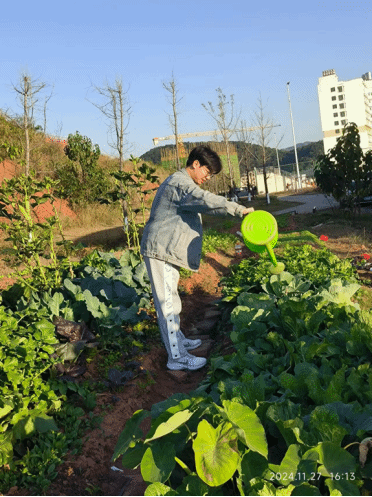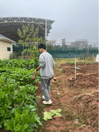 在实践基地,同学们分工协作、各司其职。翻土、浇水、锄草、采摘,虽然动作略显生涩,但每一个步骤都做得认真而专注。尽管双手沾上了泥土、汗水浸湿了衣衫,同学们却丝毫没有降低劳动热情,一个个干劲十足。