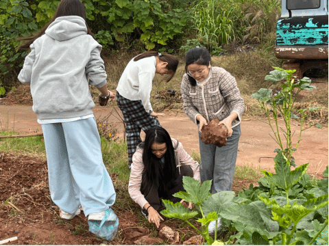 挖红薯的区域则不时传来阵阵欢呼。同学们弯腰弓背,顺着红薯藤仔细挖掘,当一个个红薯从土里翻滚而出,他们的脸上写满了惊喜与成就感。有的红薯体型硕大,需要多人合力才能拔出,过程中充满了挑战与乐趣。