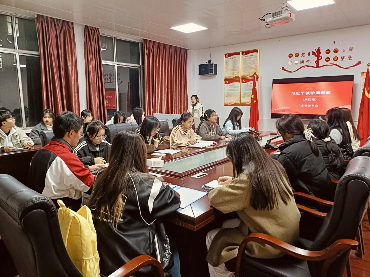 在时代的思想浪潮中踏浪前行,于理论的浩瀚星空中探寻智慧。为进一步夯实学生的专业理论基础,培养学生阅读习惯,12月4日晚,24思政班在1214会议室举办了一场聚焦《习近平谈治国理政》第四卷“以伟大自我革命引领伟大社会革命”的读书分享会,出席读书会的有习近平新时代中国特色社会主义思想概论教研室主任甘希和24思政“红魂筑梦”班部分同学。