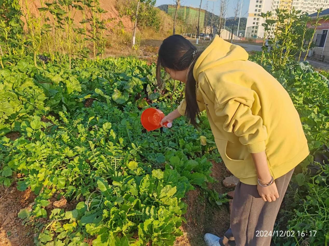 在校园劳动实践基地,同学们有序地开展田园劳作。浇水是同学们日常劳动的重要内容之一。他们依据各类蔬菜的需水特点,精准地进行浇水操作。手持水桶的同学,将水轻缓地倒入垄沟,让水分渗透到土壤深处;使用喷壶的同学,则细致地为蔬菜叶片喷洒适量的水,确保蔬菜得到充分滋润。