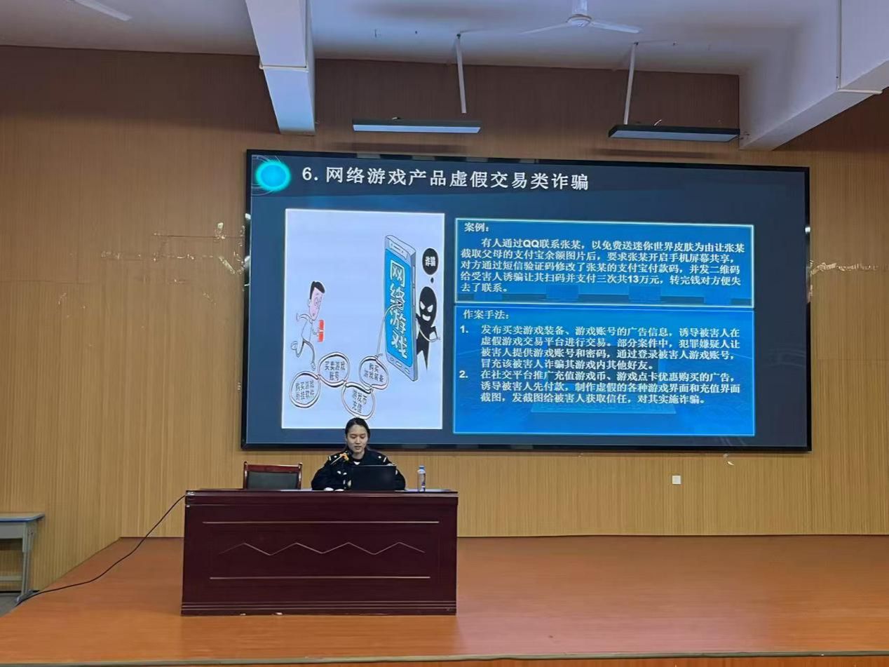 帅歌详细剖析了多种电信诈骗类型,如冒充公检法、网络购物诈骗等。她通过具体案例和实例说明,让同学们更加直观地了解了诈骗的手段和特征,并给出了具体的防范建议。