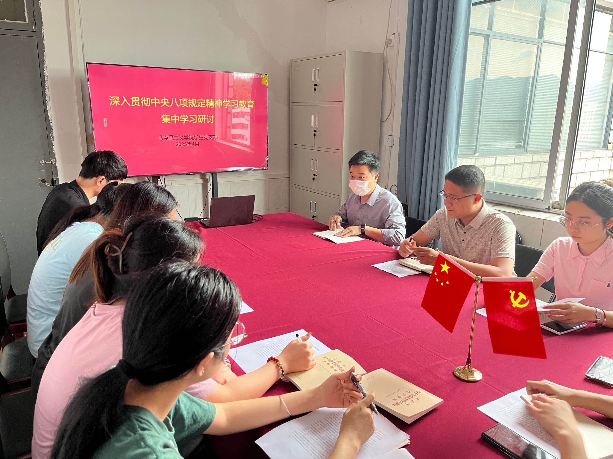近日,马克思主义学院学生党支部召开深入贯彻中央八项规定精神学习教育集中学习研讨会。此次会议旨在强化学生党员对中央八项规定精神的深刻理解与贯彻落实,提升学生党员的纪律意识和规矩意识,进一步加强学生党支部的作风建设。
