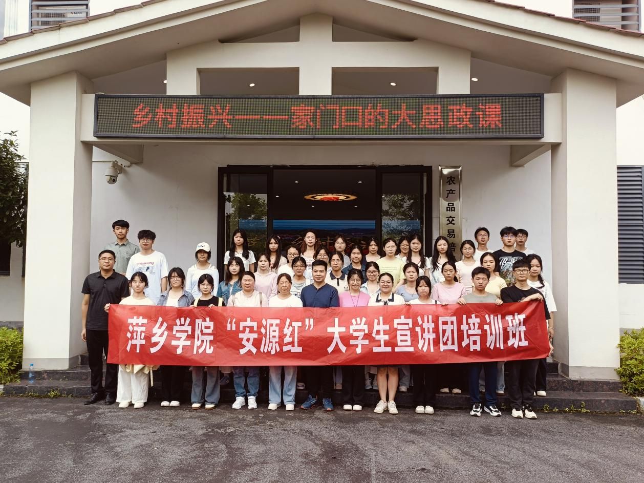 5月17日,马克思主义学院2025年“安源红”大学生宣讲团暨“青年马克思主义者培养工程”大学生骨干培训班走进芦溪县紫溪村,开展沉浸式实践活动,在乡村振兴一线汲取奋进力量。本次活动由马克思主义学院院长朱红英、党委副书记黄如光、教学科研科科长何知、学工科科长、团委书记陈尧嘉带队,全体“安源红”大学生宣讲团成员和青马班学员参与。