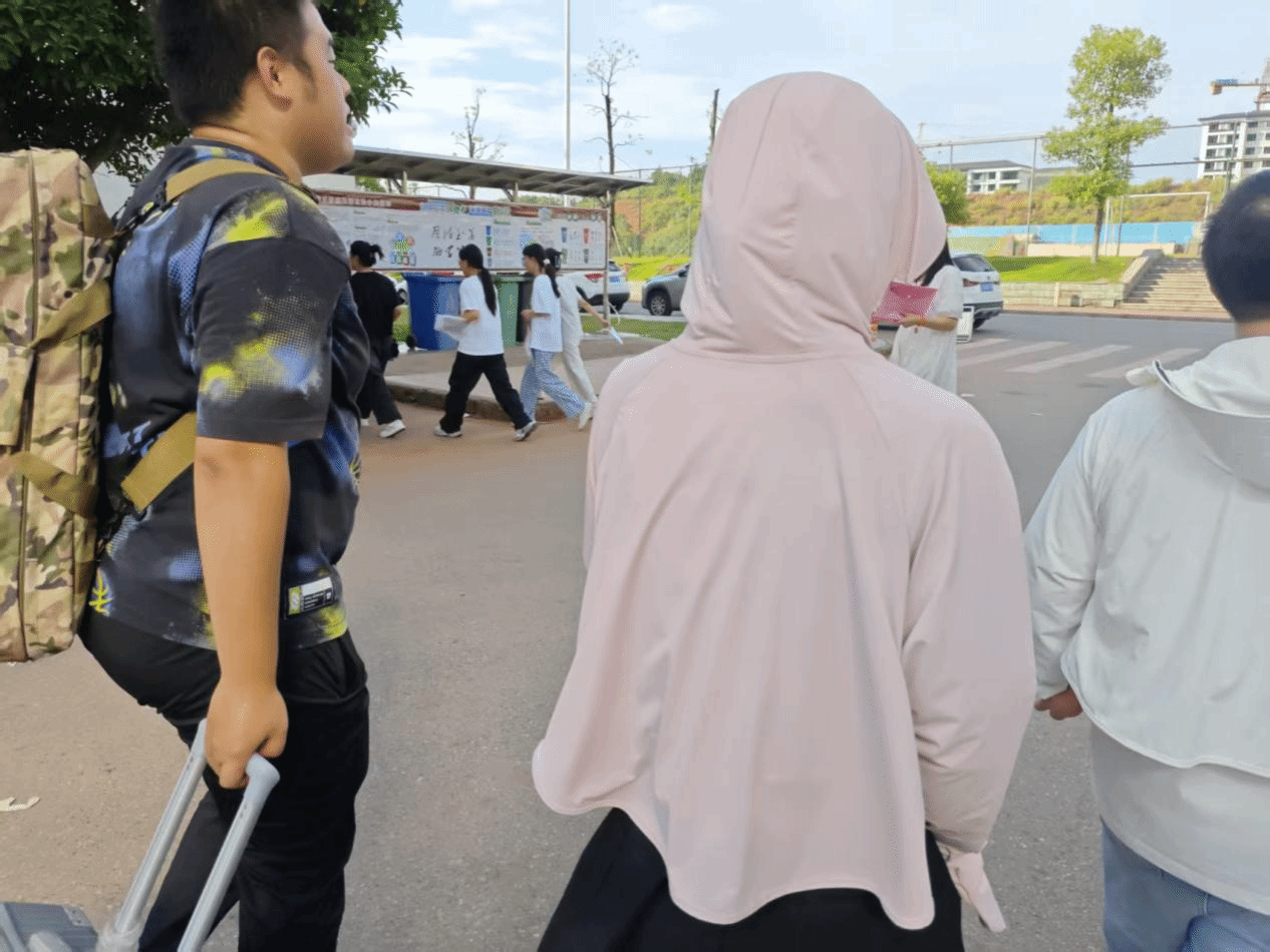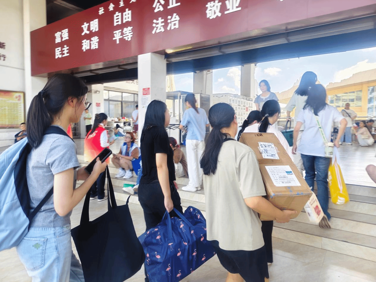 领完军训服,新生手中多了行李和物资,学长学姐们二话不说主动上前接过,问清宿舍楼层后便大步往前走。无论是沉甸甸的行李箱,还是鼓鼓囊囊的军训包,他们都稳稳扛在肩上,汗水顺着脸颊淌下、浸湿后背,却没停下脚步,也没喊过一声累。“去年我报到时,也是学长学姐帮了我,现在能把这份温暖传递下去,特别有意义。”2024级思政专业学长的话语,道出了这份互助情谊的传承力量。
