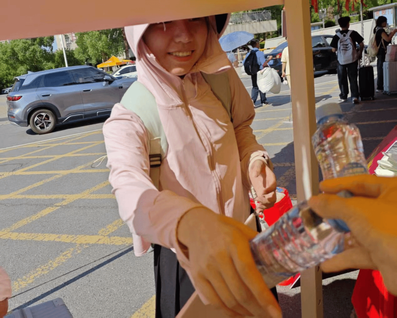 当新生和家长顶着烈日踏入校园,额头沁出细密汗珠时,学院迎新点的学长学姐早已捧着备好的瓶装水迎上前,轻声安抚:“别急,手续可以慢慢办。”一瓶瓶凉水驱散了燥热,也让陌生校园瞬间多了份贴心暖意。随后,志愿者主动引导新生及家长熟悉报到流程,为后续环节做好准备。